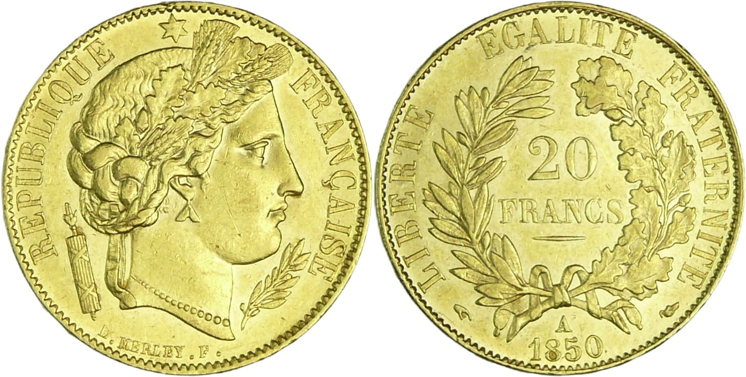 France – Deuxième république (1848-1852) – 20 francs Cérès 1850 A (Paris)
