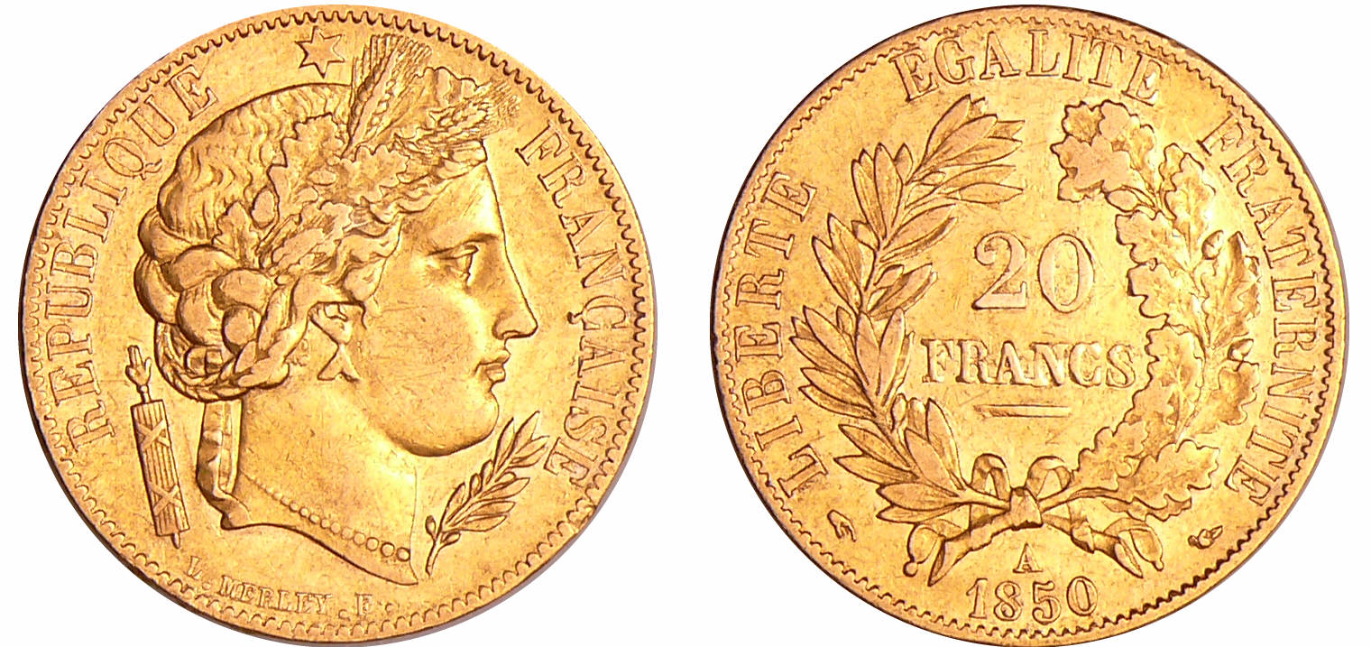 / France – Deuxième république (1848-1852) – 20 francs Cérès 1850 A (Paris)