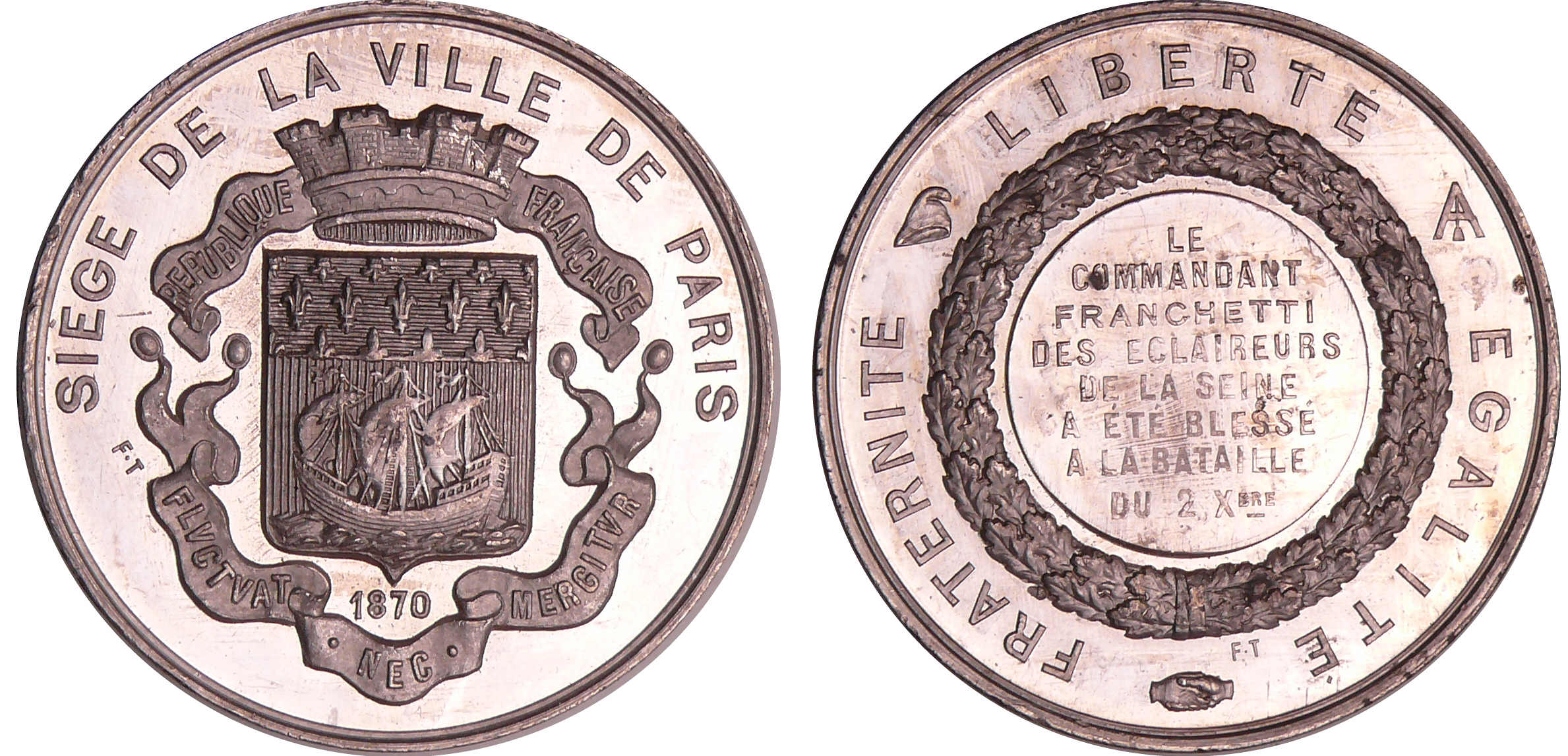Avers : A/ SIEGE DE LA VILLE DE PARIS/ 1870/ Armoiries couronnées de la ville de Paris.