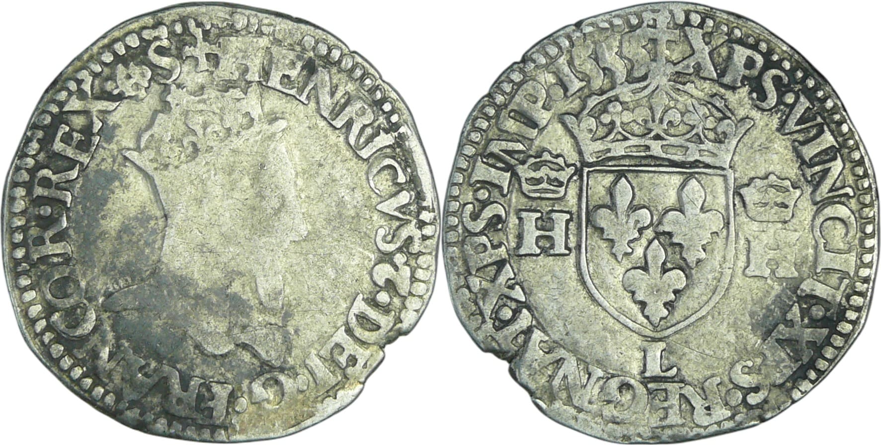 Avers : A/ + HENRICVS. II. D. G. FRANC. REX. Buste lauré à droite.