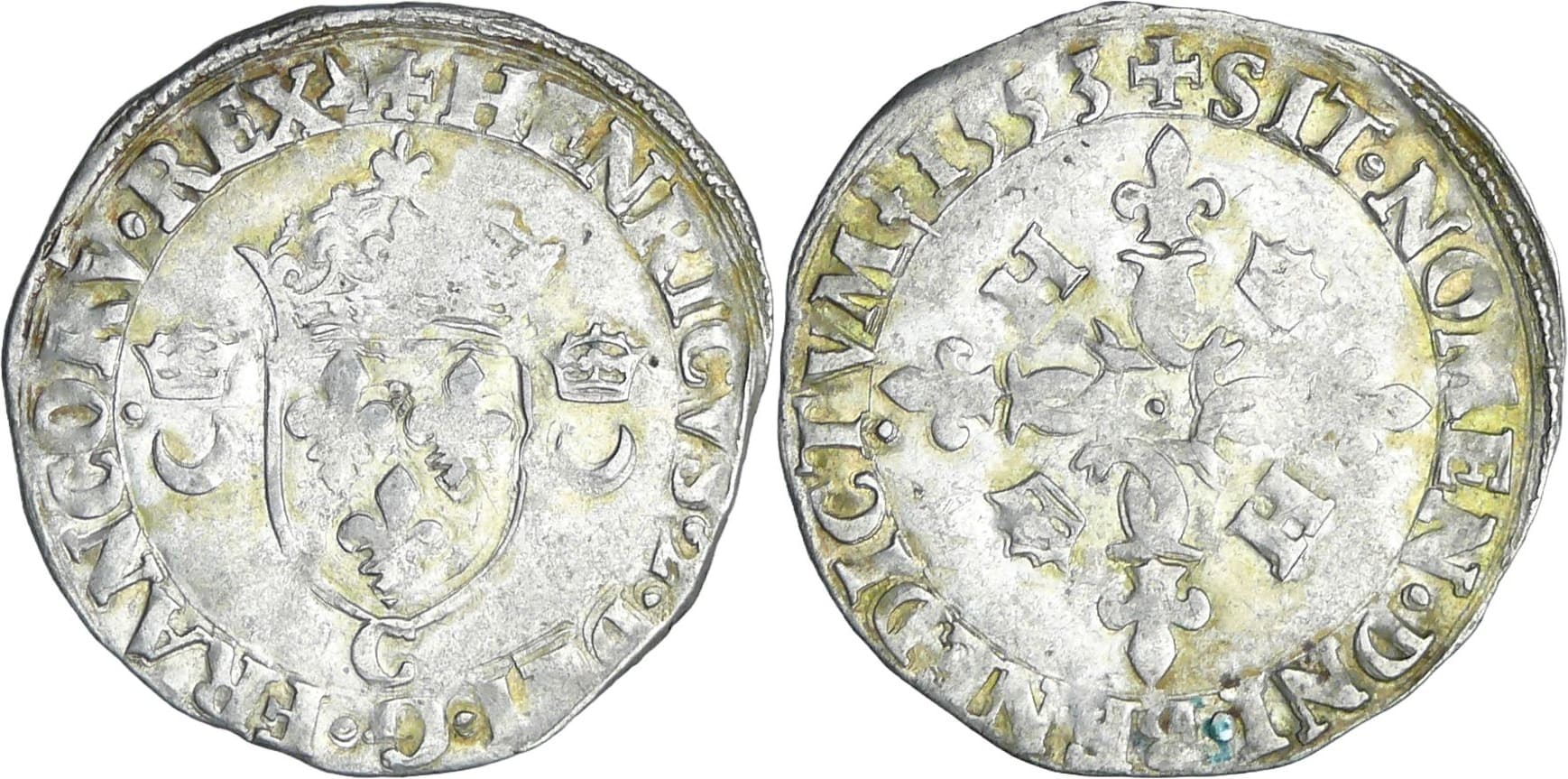 / France – Henri II (1547-1559) – Douzain aux croissants – 1553 C (Saint-Lô)