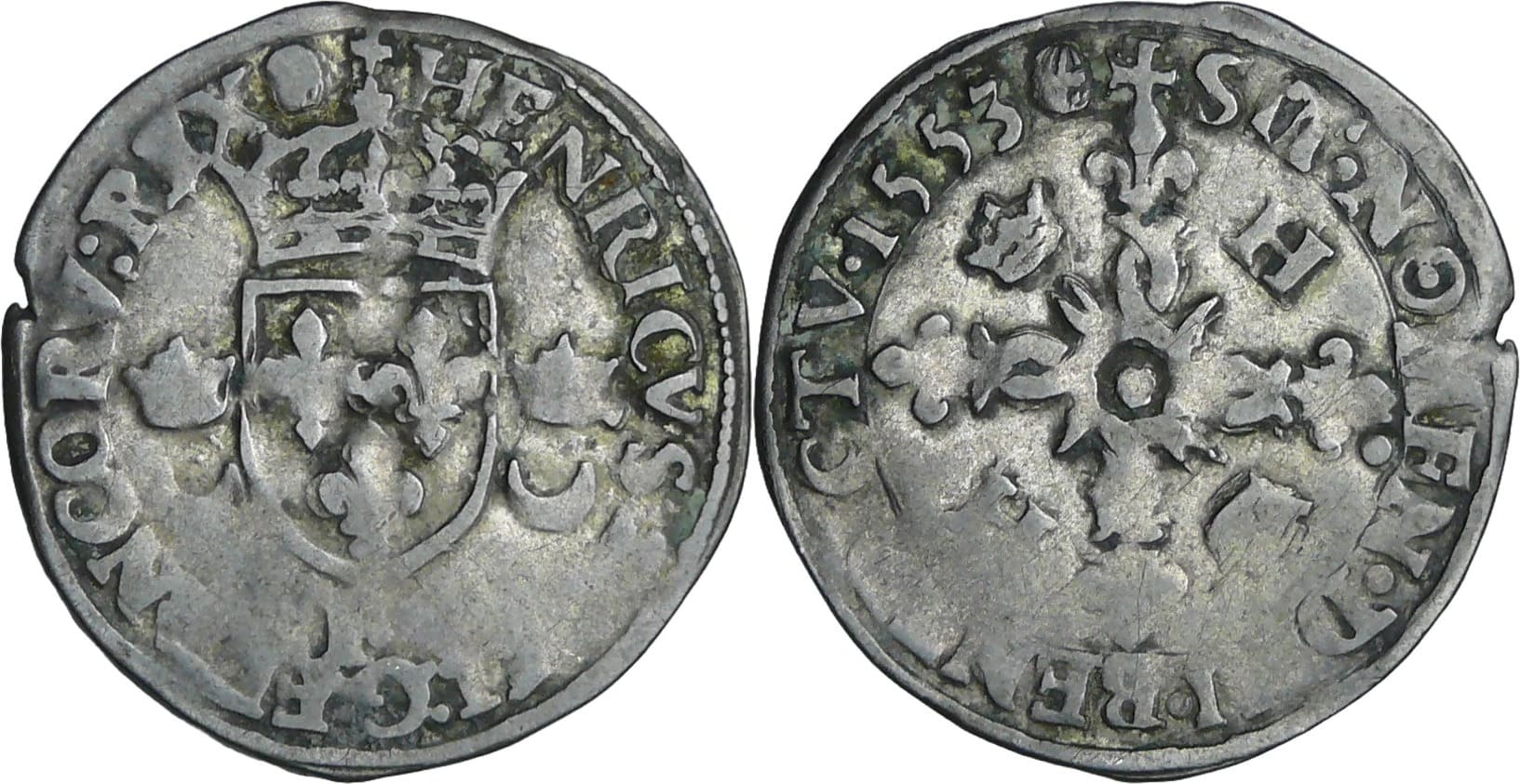 / France – Henri II (1547-1559) – Douzain aux croissants – 1553 P (Dijon)