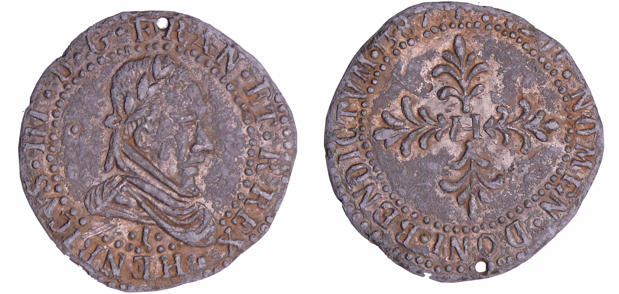 France – Henri III (1574-1589) – Demi-franc au col plat – 1587 I (Limoges) Faux en étain
