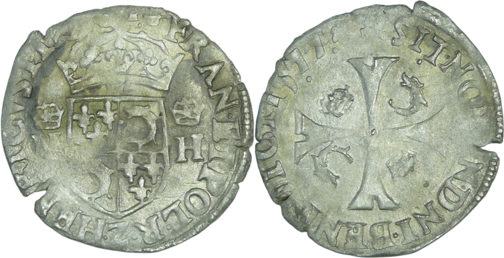 Avers : A/. HENRICVS. III. D. G. FRAN. ET. POL. REX. Ecu de France-Dauphiné couronné et accosté de deux H couronnés.
