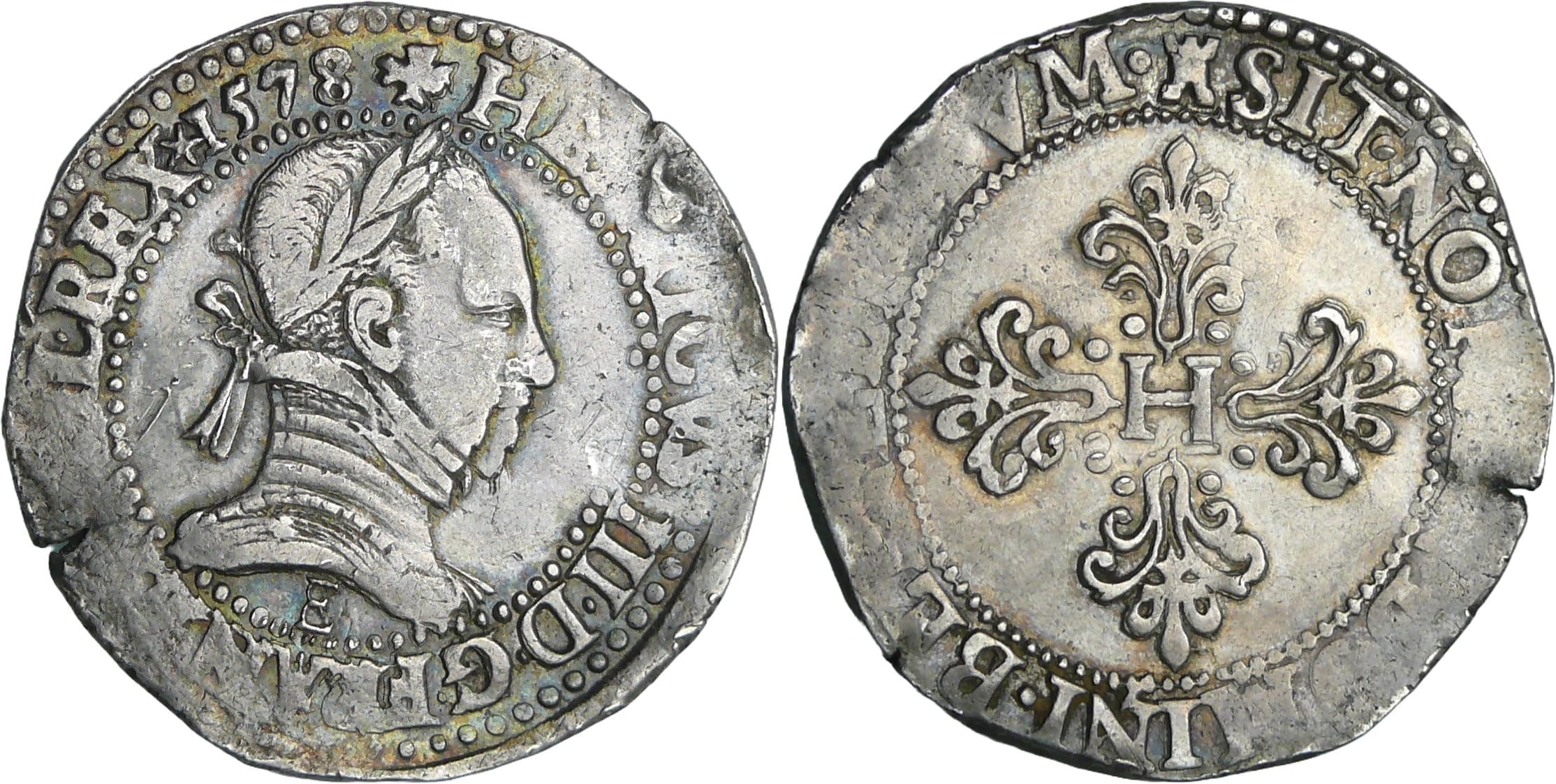 / France – Henri III (1574-1589) – Franc au col plat – 1578 E (Tours)