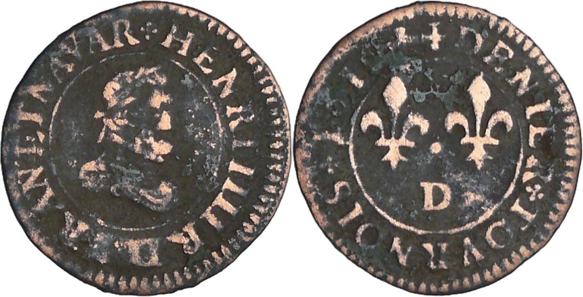 France – Henri IV (1589-1610) – Denier tournois – 1610 D (Lyon)