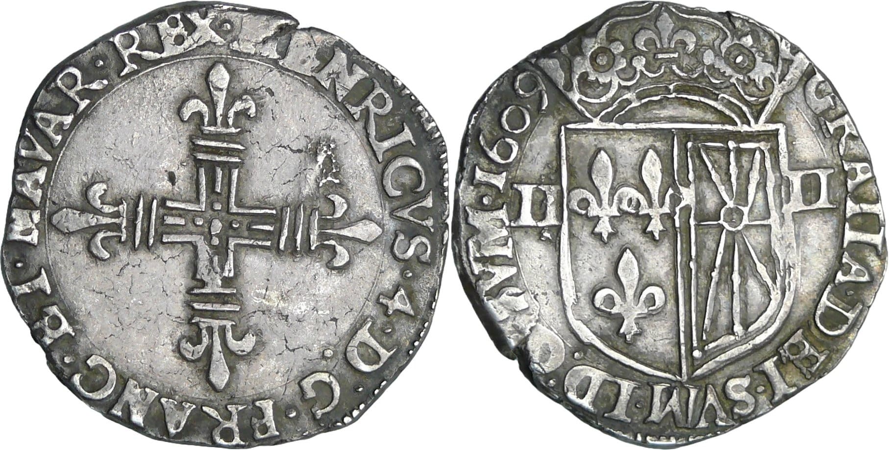 / France – Henri IV (1589-1610) – Quart d’écu de Navarre – 1609 (Saint-Palais )