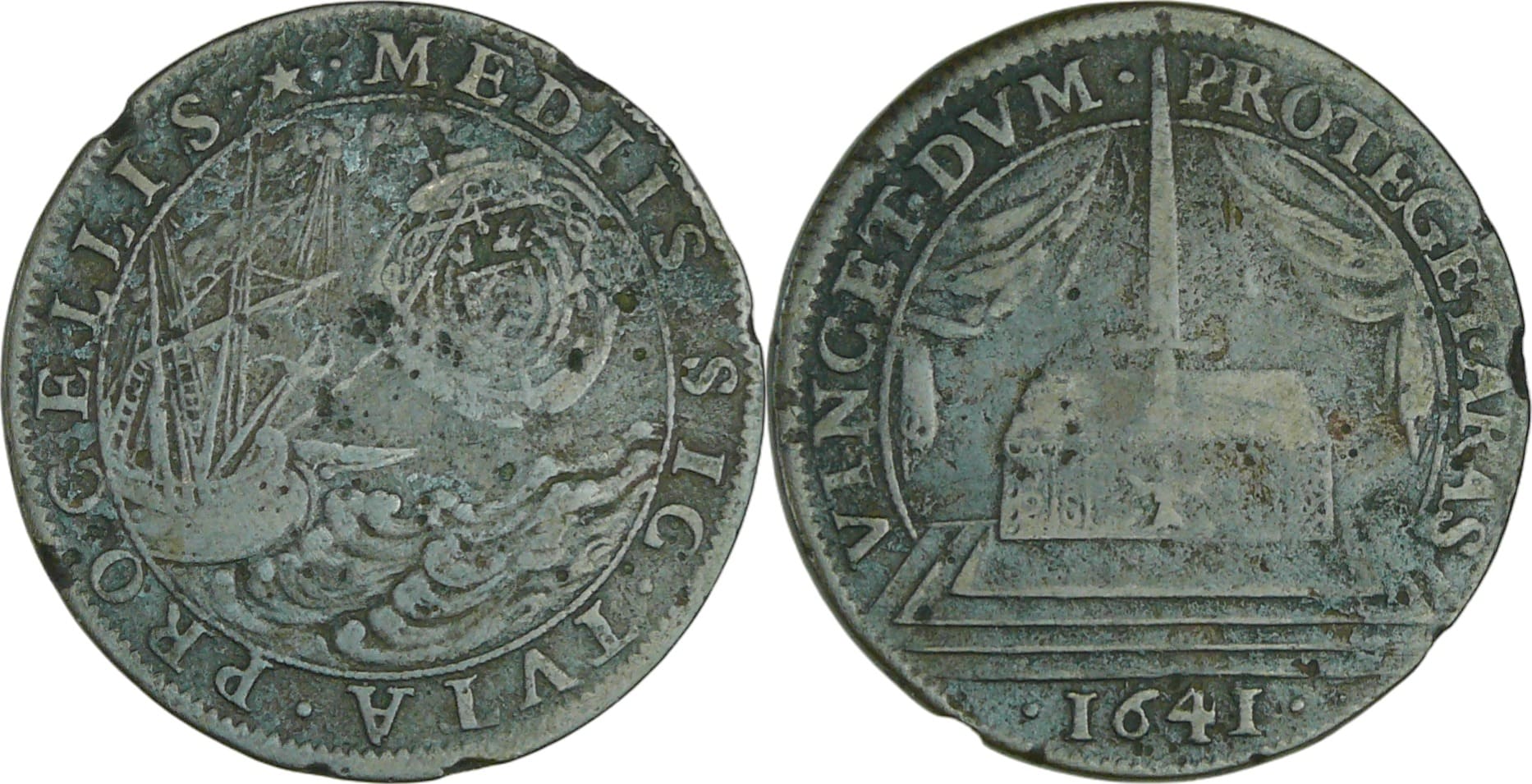 Avers : A/ MEDIIS SIC TVTA PROCELLIS Vaisseau ballotté par la tempête, retenu par un cable attaché aux armes de Richelieu.