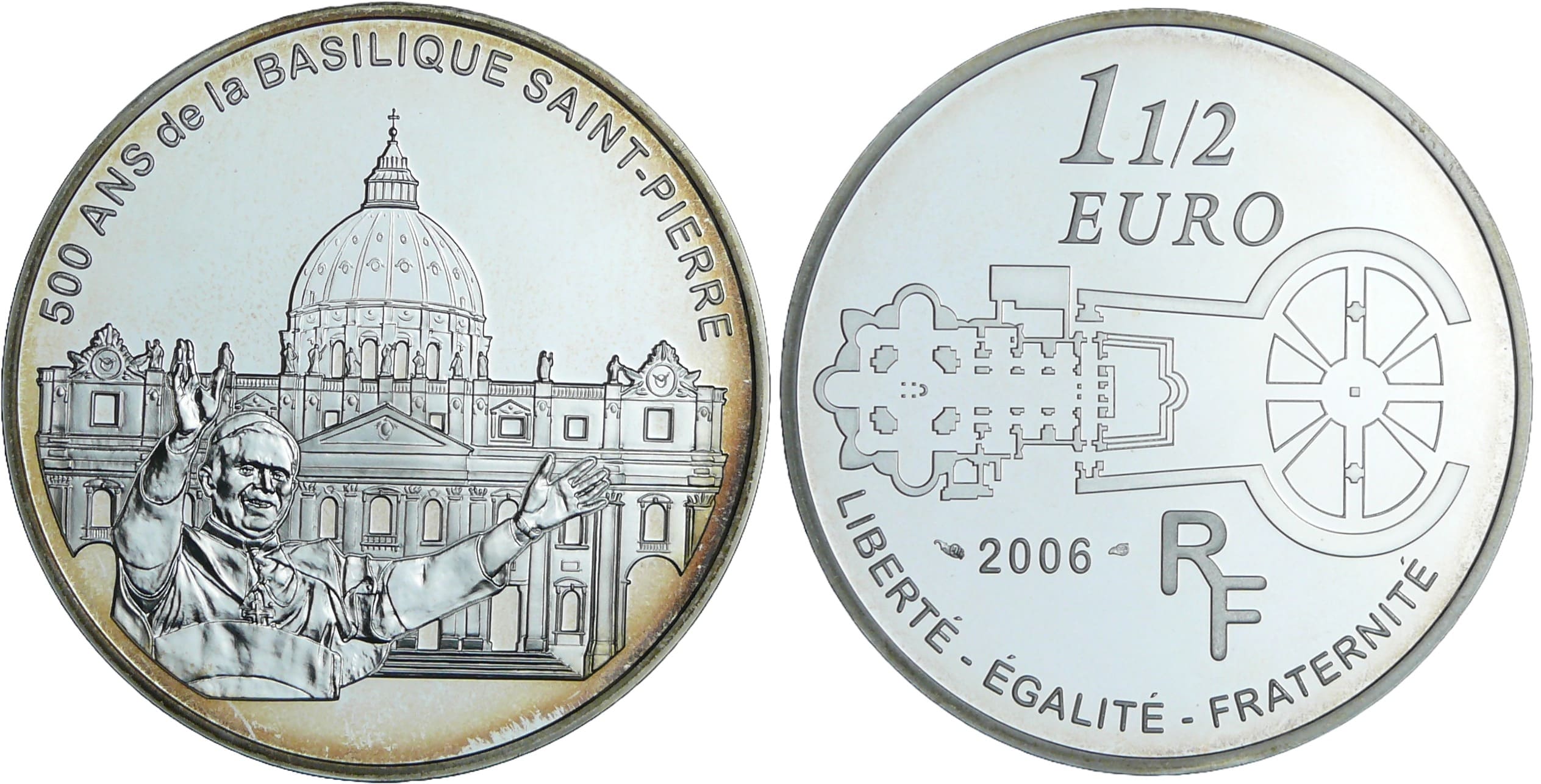 France – Lieux et monuments du monde – Belle Épreuve de 1 1/2 euro – Basilique Saint-Pierre 2006