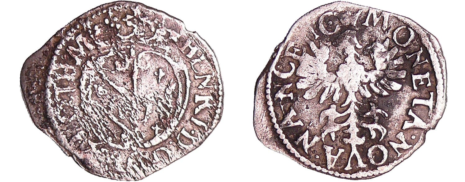 R/ MONETA NOVA NANCEII C Croix de Lorraine couronnée accostée de deux aiglons couronnés.