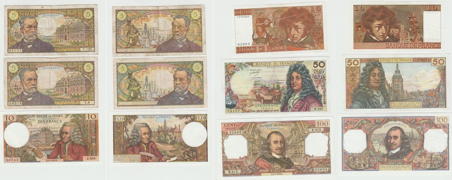 France – Lot de 6 billets 100, 50, 10 et 5 francs