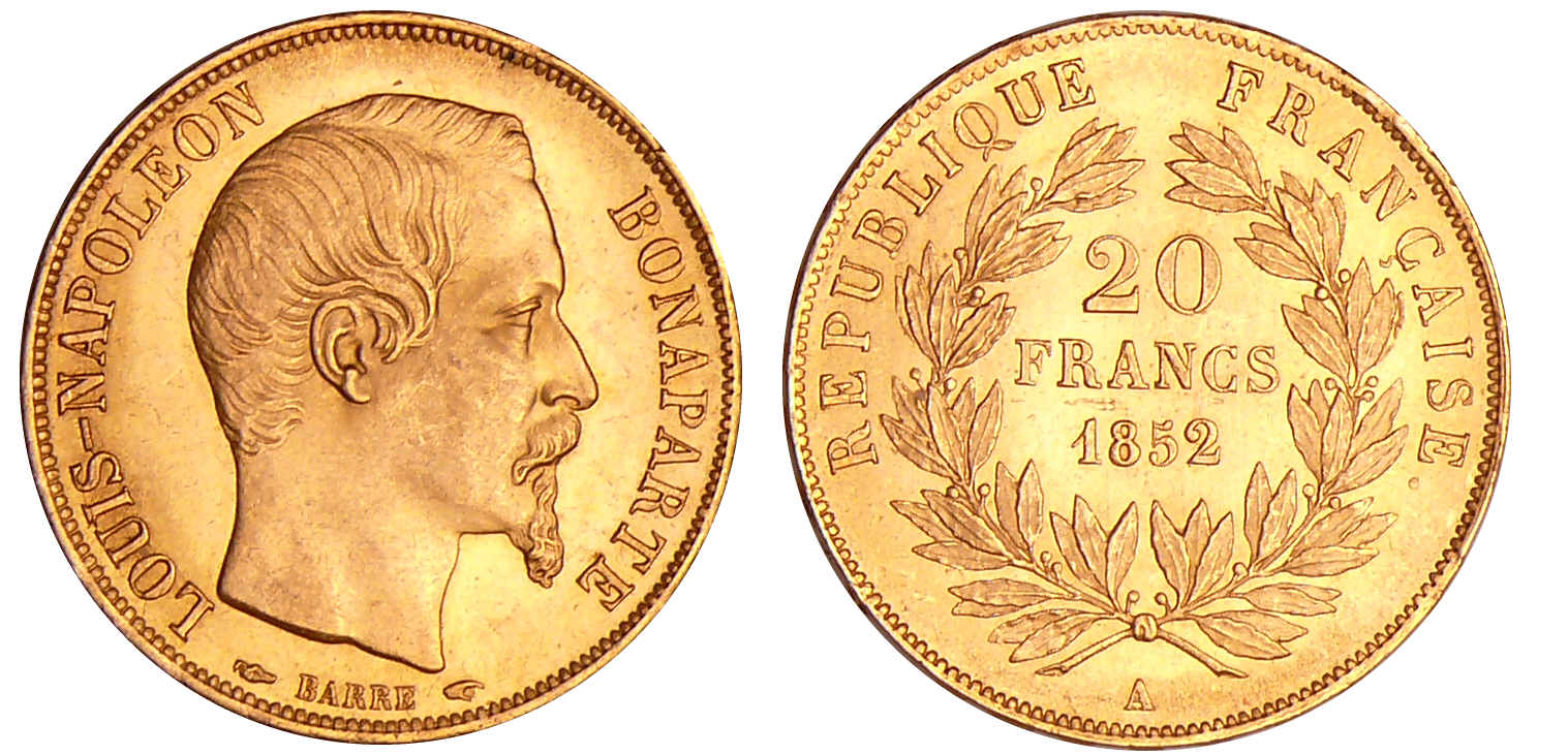 / France – Louis Napoléon Bonaparte (1848-1852) – 20 francs 1852 A (Paris)