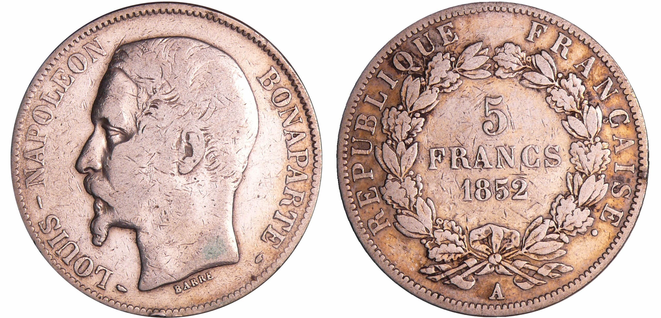 / France – Louis Napoléon Bonaparte (1848-1852) – 5 francs 1852 A (Paris)