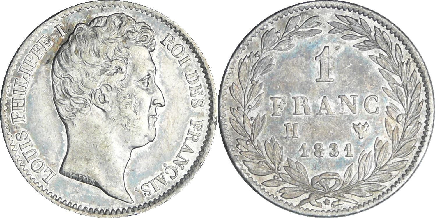 / France – Louis-Philippe Ier (1830-1848) – 1 franc tête nue 1831 H (La Rochelle)