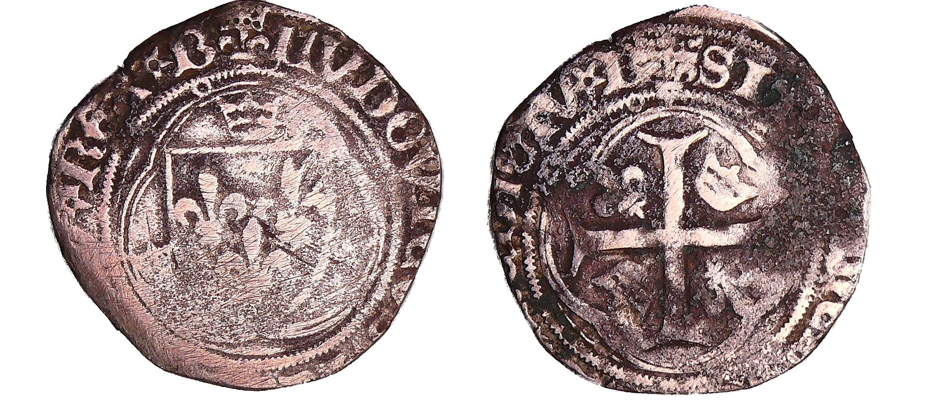 A/ + LVDOVICVS* FRANCORVM* REX. Ecu de France entre trois couronnelles dans un trilobe.