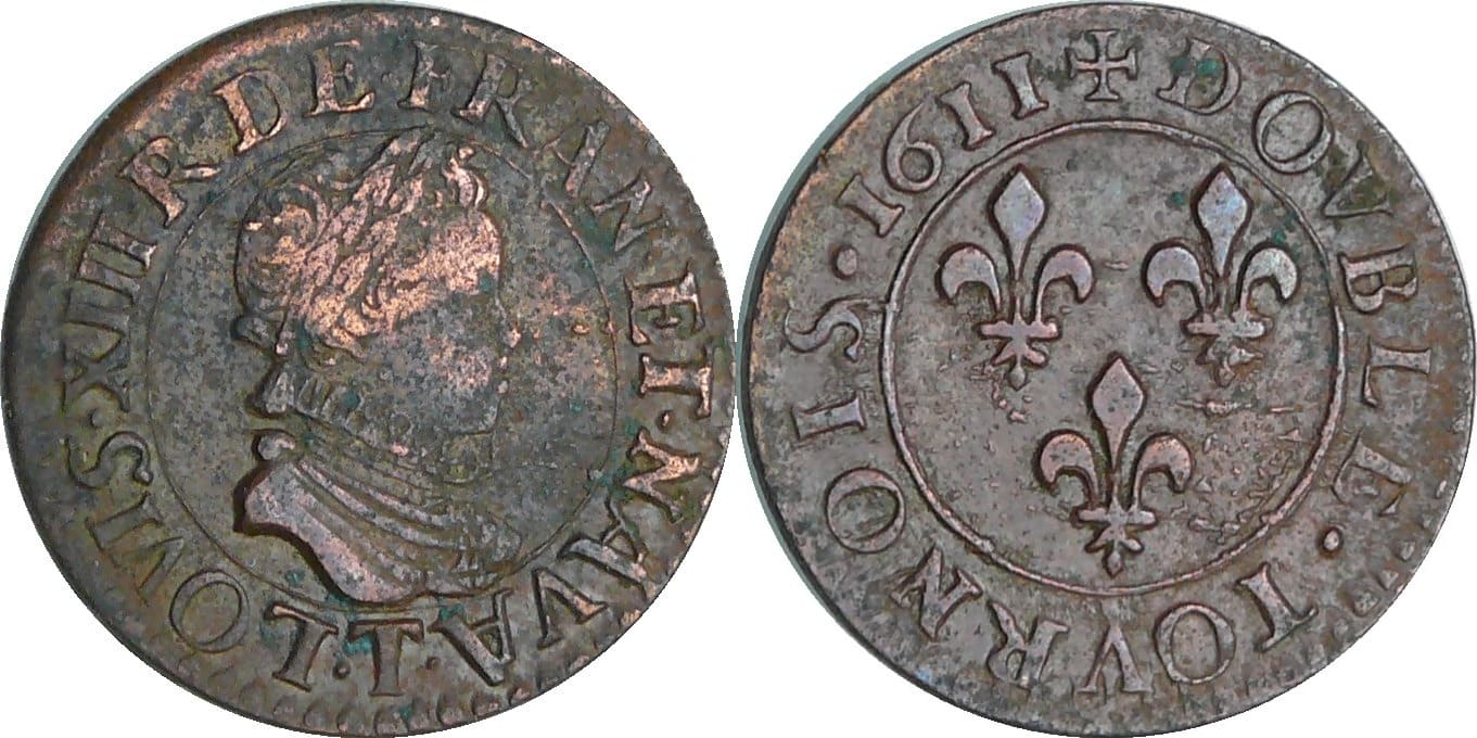 / France – Louis XIII (1610-1643) – Double tournois au buste enfantin et col fraisé – 1611 T (Nantes)
