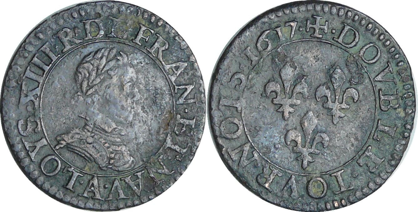 quantité de France - Louis XIII (1610-1643) - Double tournois au buste enfantin et col plat - 1617 A (Paris)