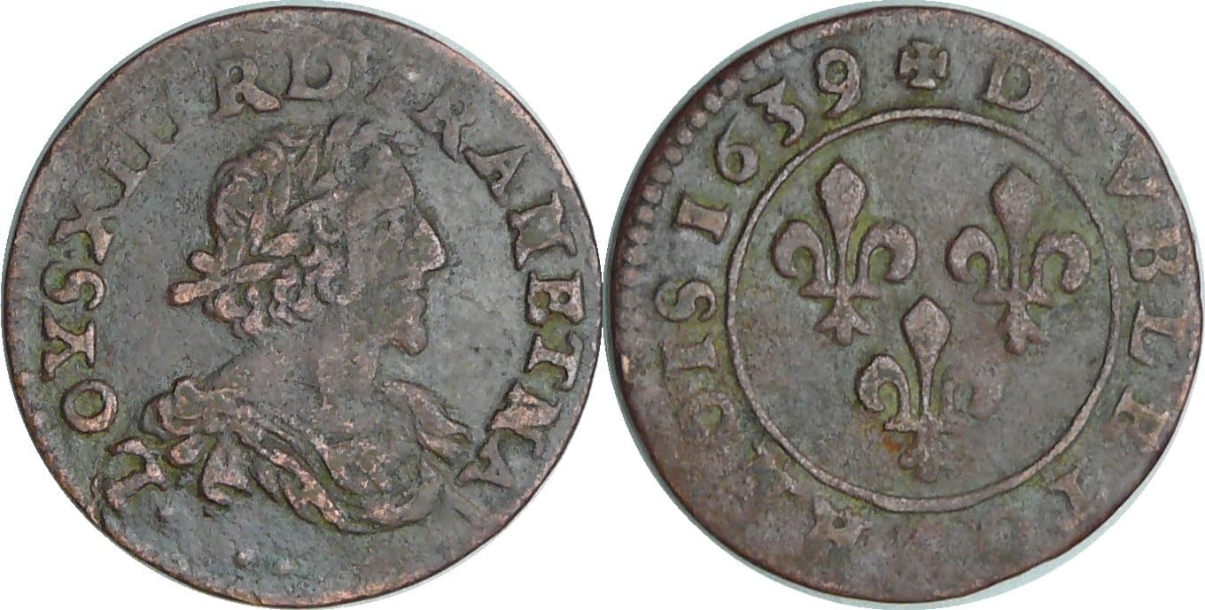 France – Louis XIII (1610-1643) – Double tournois au buste viril drapé à l’antique – 1640 •• (Axe loire-Rhône)