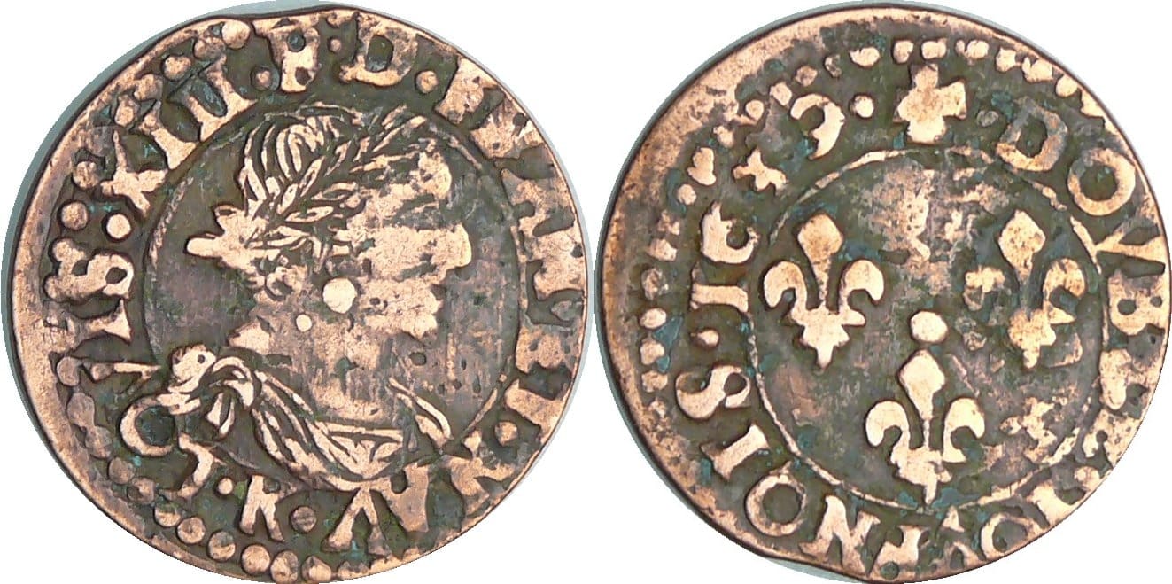 quantité de France - Louis XIII (1610-1643) - Double tournois au buste viril drapé à l’antique - 1639 K (Bordeaux)