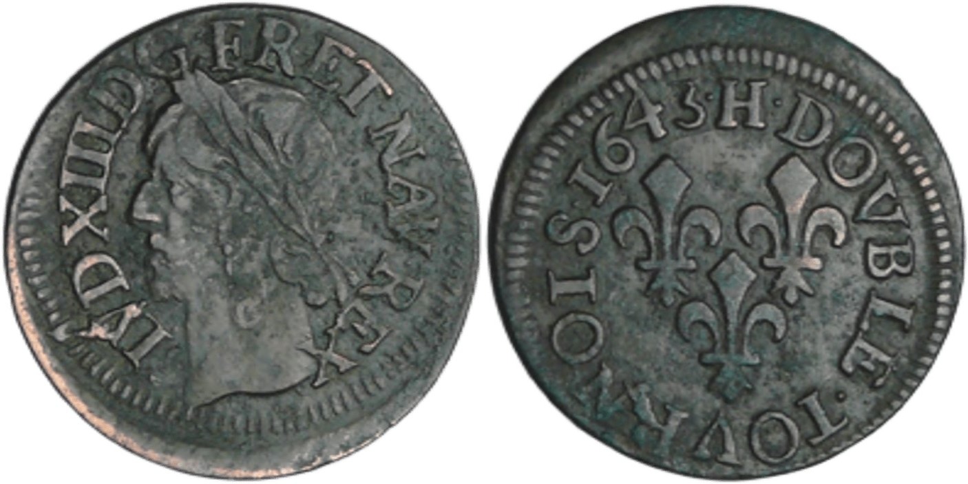 France – Louis XIII (1610-1643) – Double tournois de Warin – 1643 H (La Rochelle)