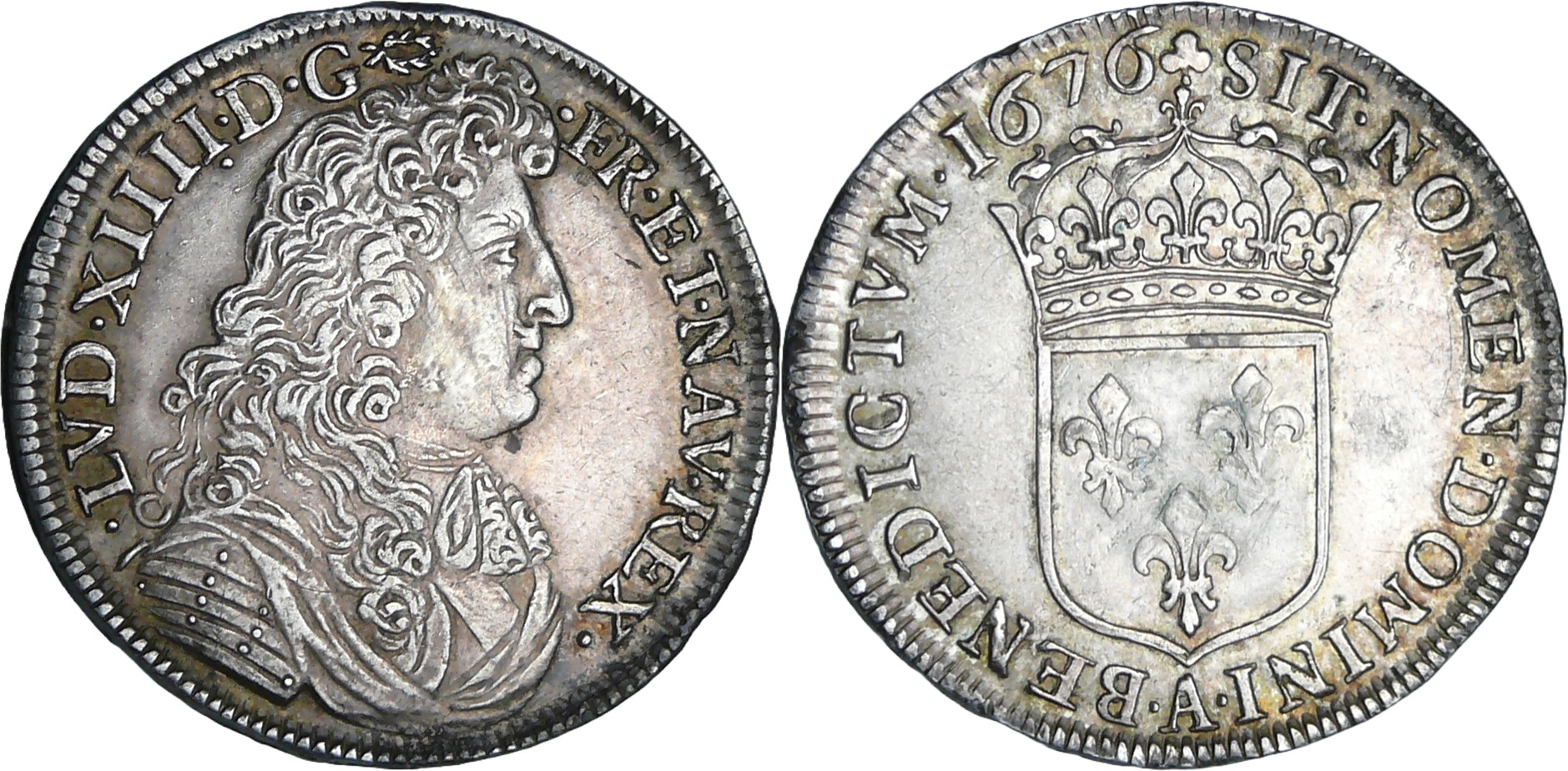 France – Louis XIV (1643-1715) – ¼ d’écu à la cravate, 1er émission – 1676 A (Paris)