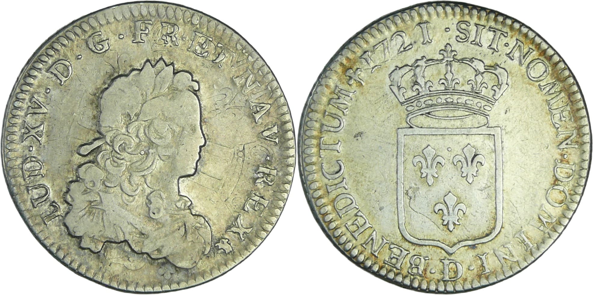 France – Louis XV (1715-1774) – 1/3 d’écu de France – 1721 D (Lyon)