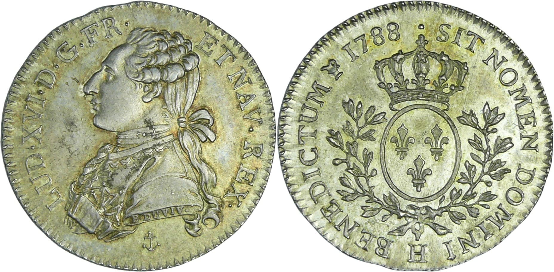 France – Louis XVI (1774-1792) – 1/5 d’écu aux branches d’olivier – 1788 H (La Rochelle)