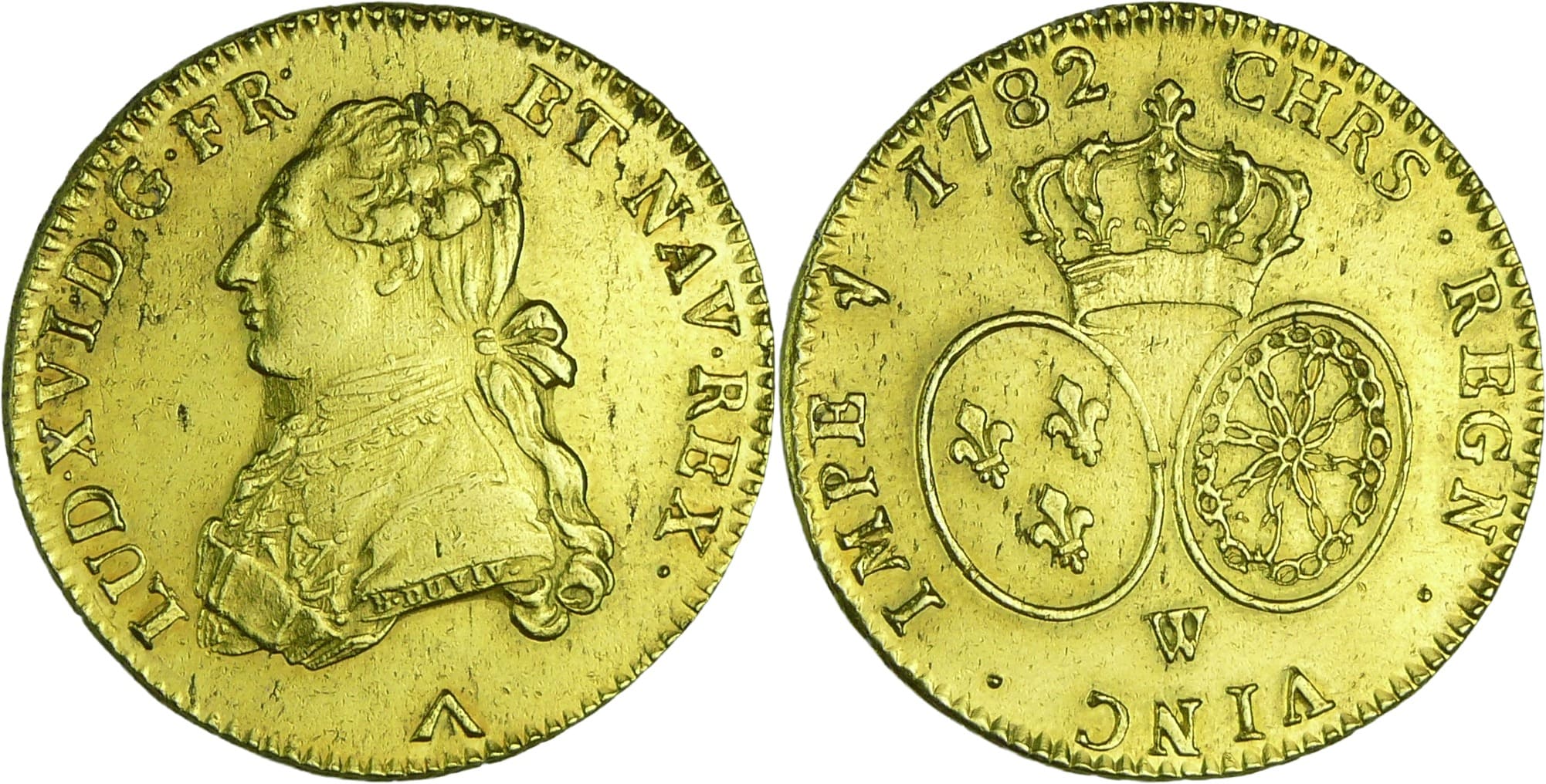France – Louis XVI (1774-1792) – Double louis d’or au buste habillé, au petit buste – 1782 W (Lille)