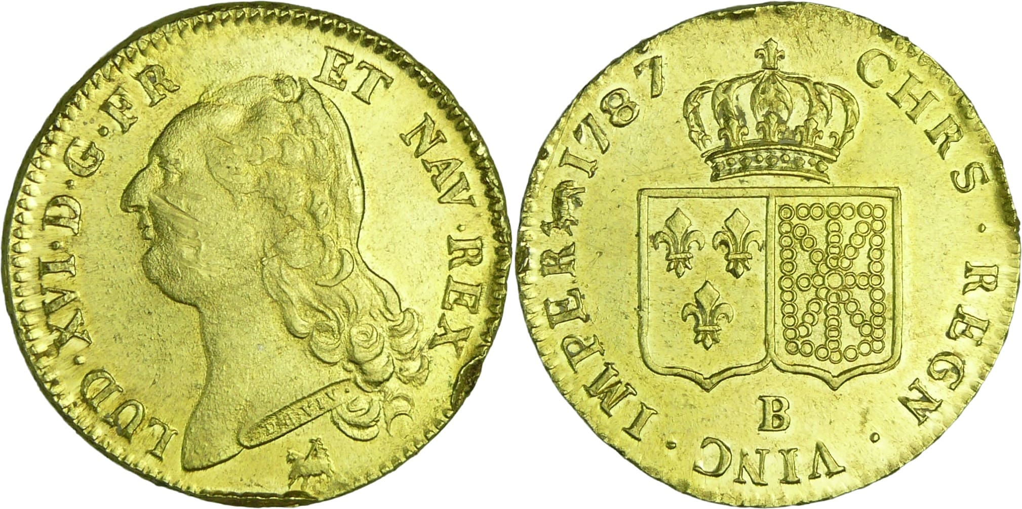 France – Louis XVI (1774-1792) – Double louis d’or au buste nu – 1787 B (Rouen)