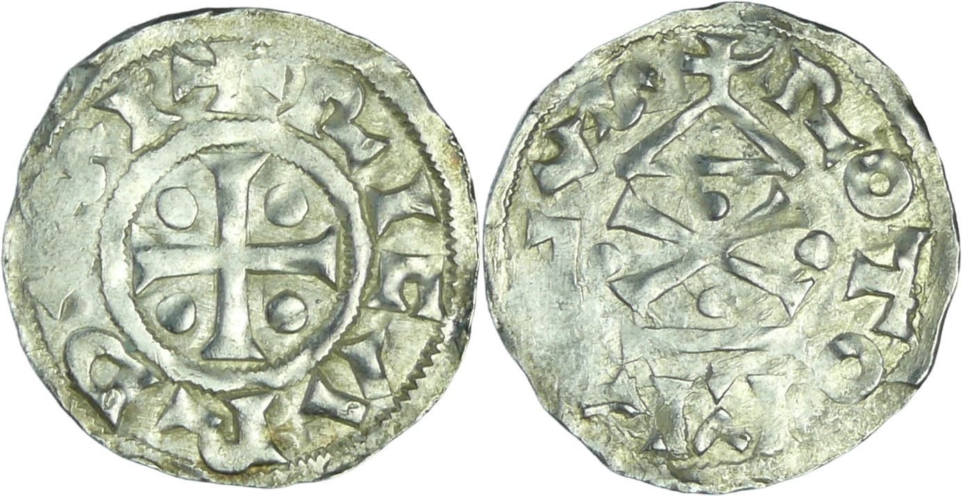 Avers : Richard 1er (960-980). A/ + RICARDVSI. Croix cantonnée de quatre besants.
