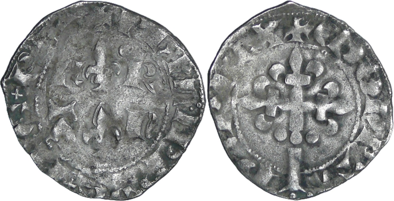 A/ + PHILIPPVS D G REX. Deux lis superposés, accostés successivement de F, R et de A, N. le si supérieur est accosté de deux points.