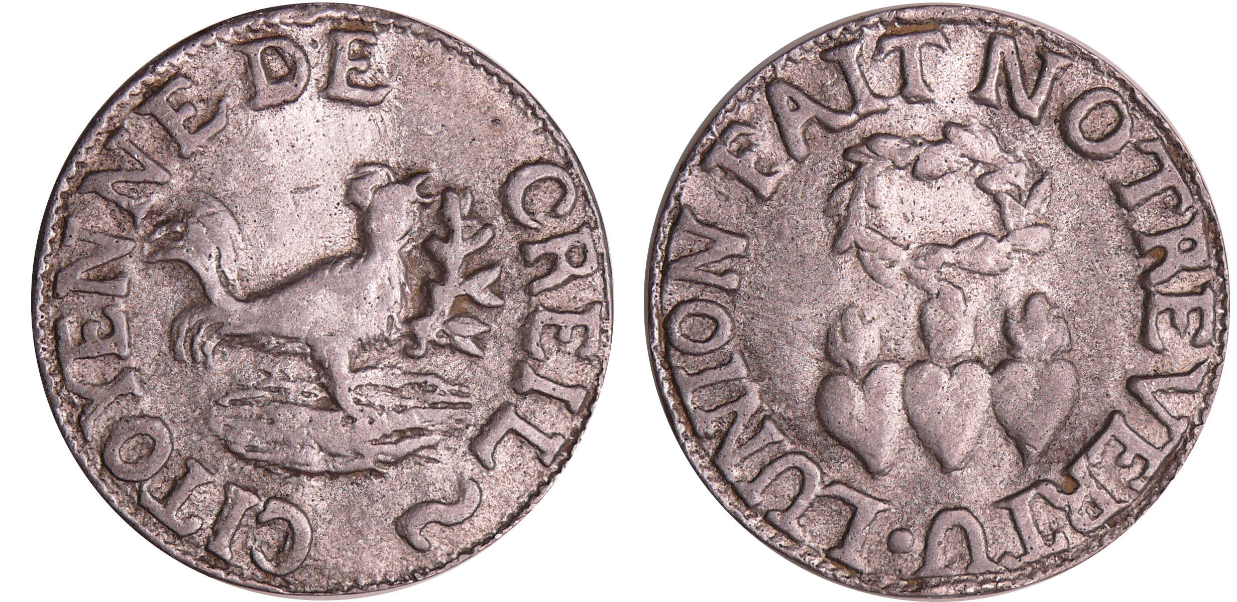 France – Révolution – Jeton citoyenne de Creil, Lunton fait notre vertu, (1790)