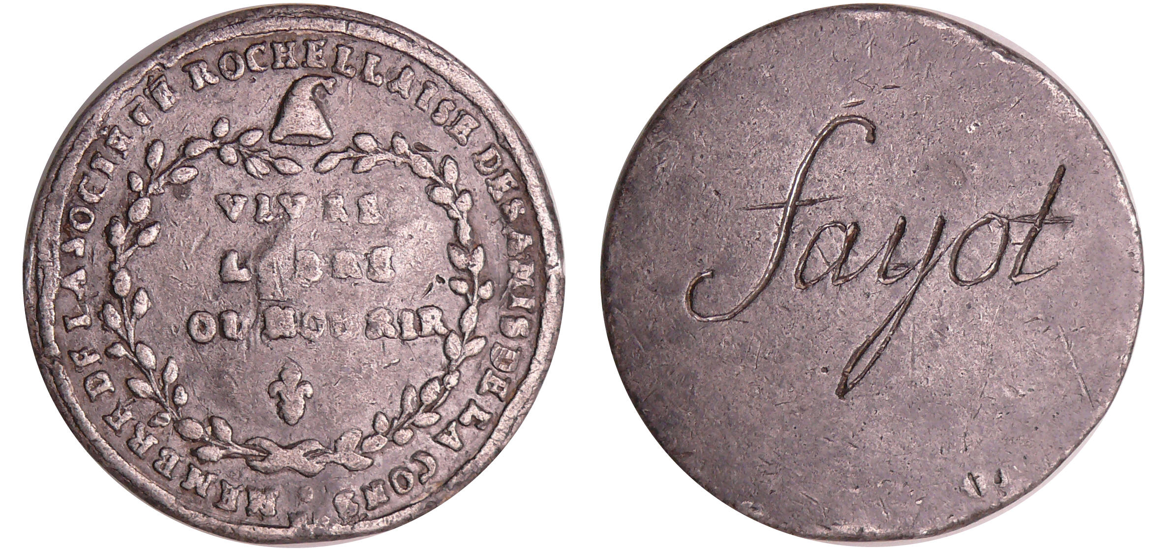 France – Révolution – Jeton de membre de la Société Rochellaise des amis de la Constitution