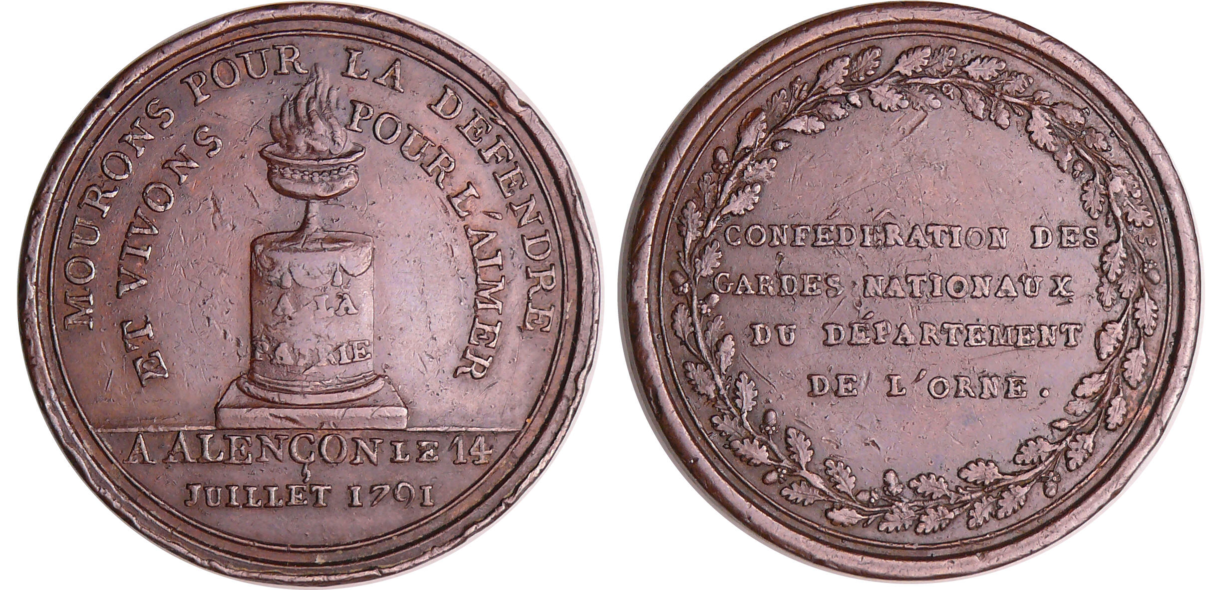 / France – Révolution – Médaille commémorant la réunion à Alençon de la confédération des gardes de l’Ormes, le 14 juillet 1791