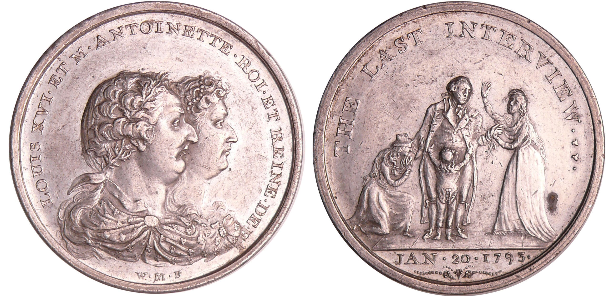 / France – Révolution – Médaille de la dernière entrevue du roi XVI, de Marie Antoinette et des enfants, 20 janvier 1793