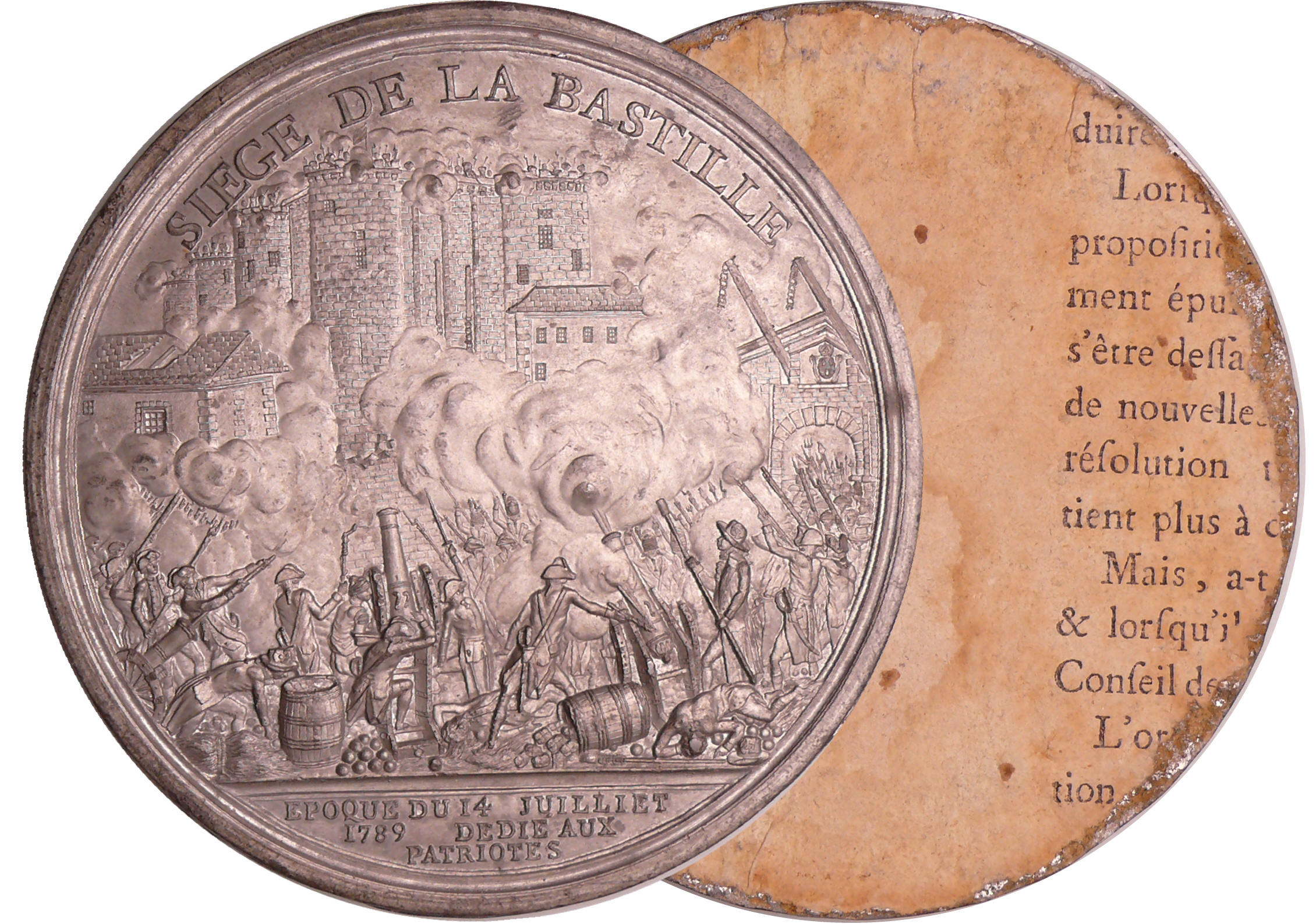 France – Révolution – Médaille uniface dans le style d’Andrieu représentant le siège de la Bastille, et dédiée aux patriotes le 14 juillet 1789