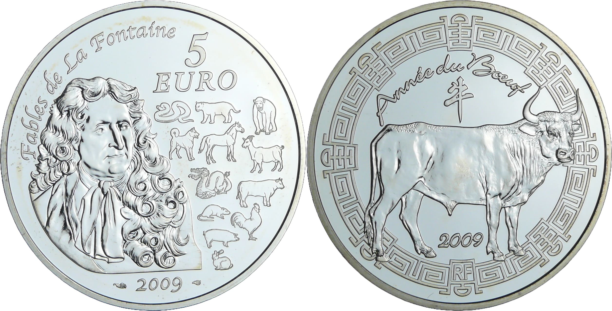 France – Série calendrier chinois – Belle Épreuve 5 euro Année du bœuf 2009