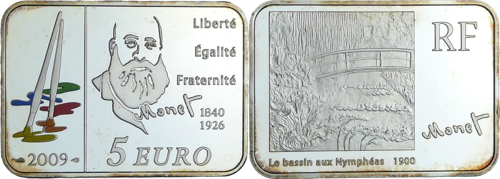France – Série Des peintres célébres – Belle Épreuve de 5 euro – Claude Monet 2009