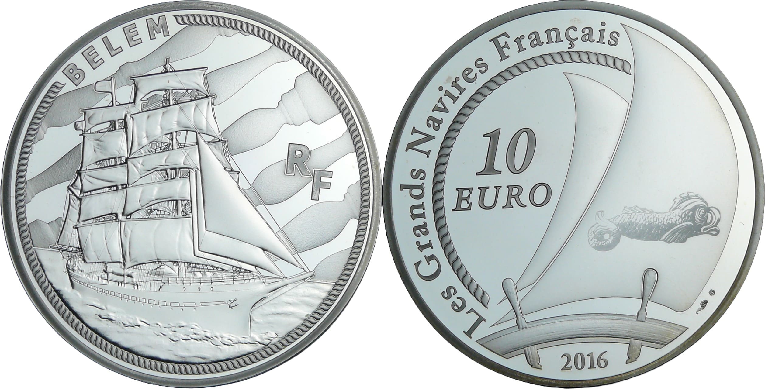 France – Série grand navire français – Belle Épreuve 10 euro – Le Belem 2016
