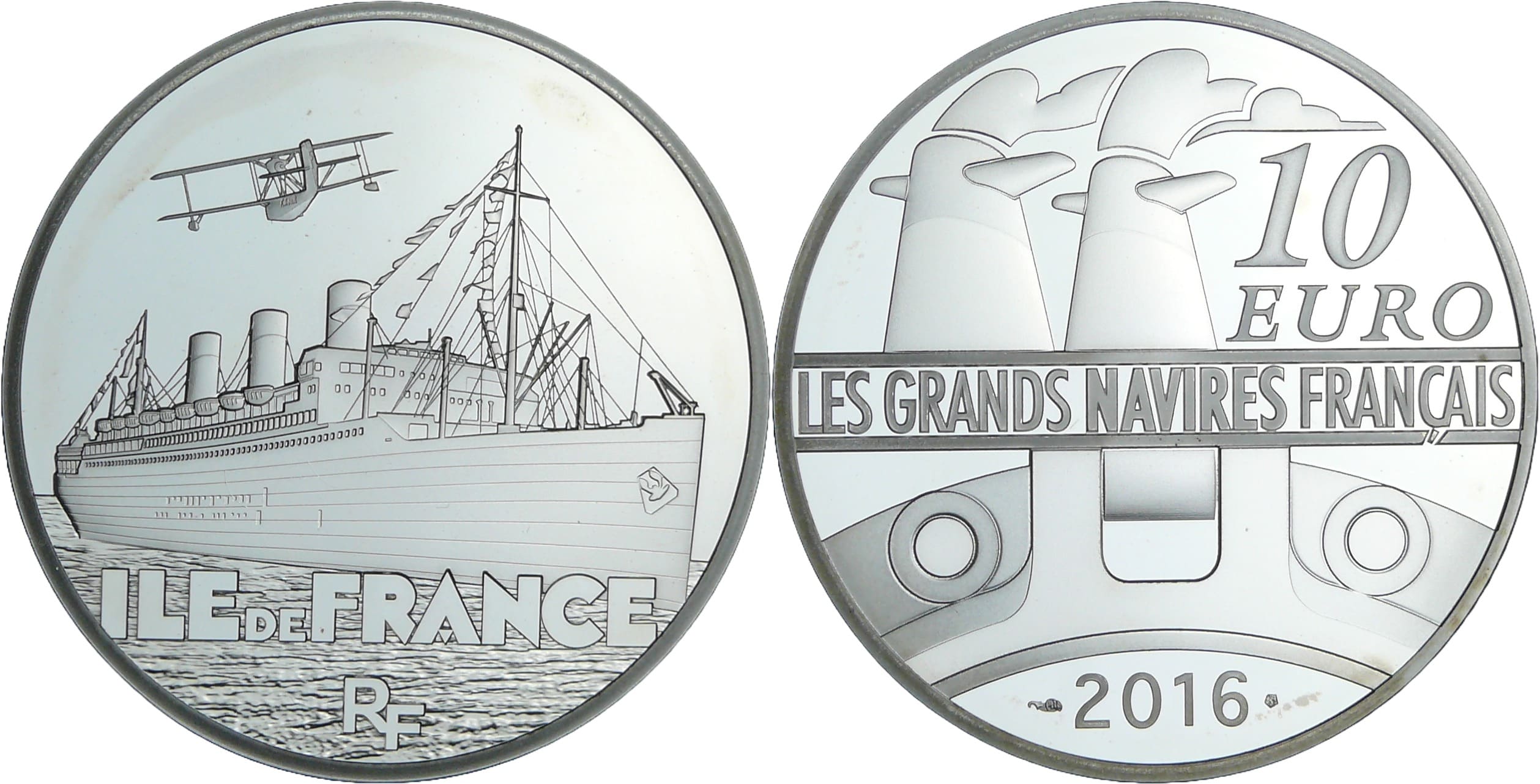 France – Série grand navire français – Belle Épreuve 10 euro – L’Ile de France 2016