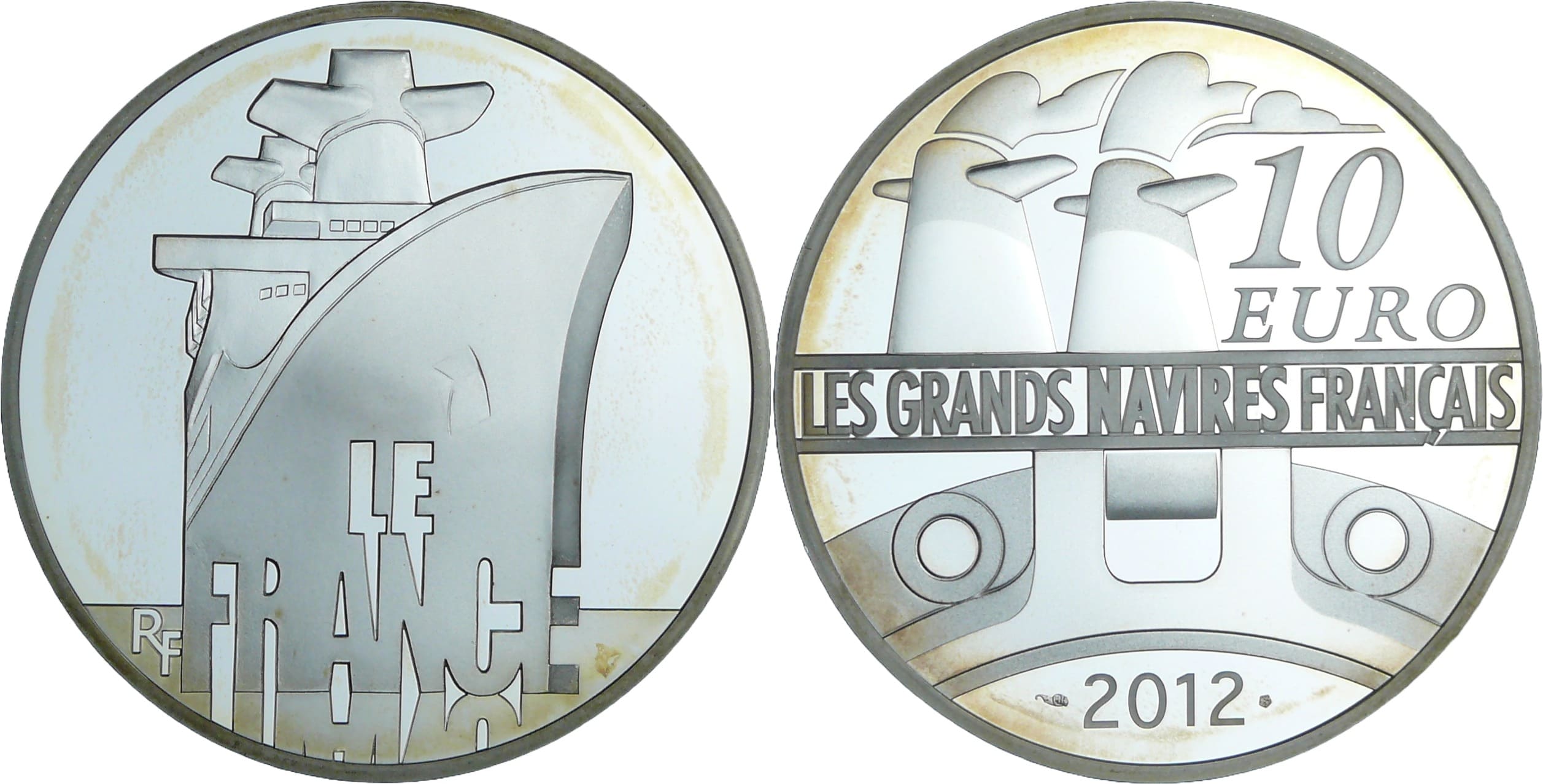 / France – Série Les grands navires français – Belle Épreuve de 10 euro – Le paquebot Le France 2012