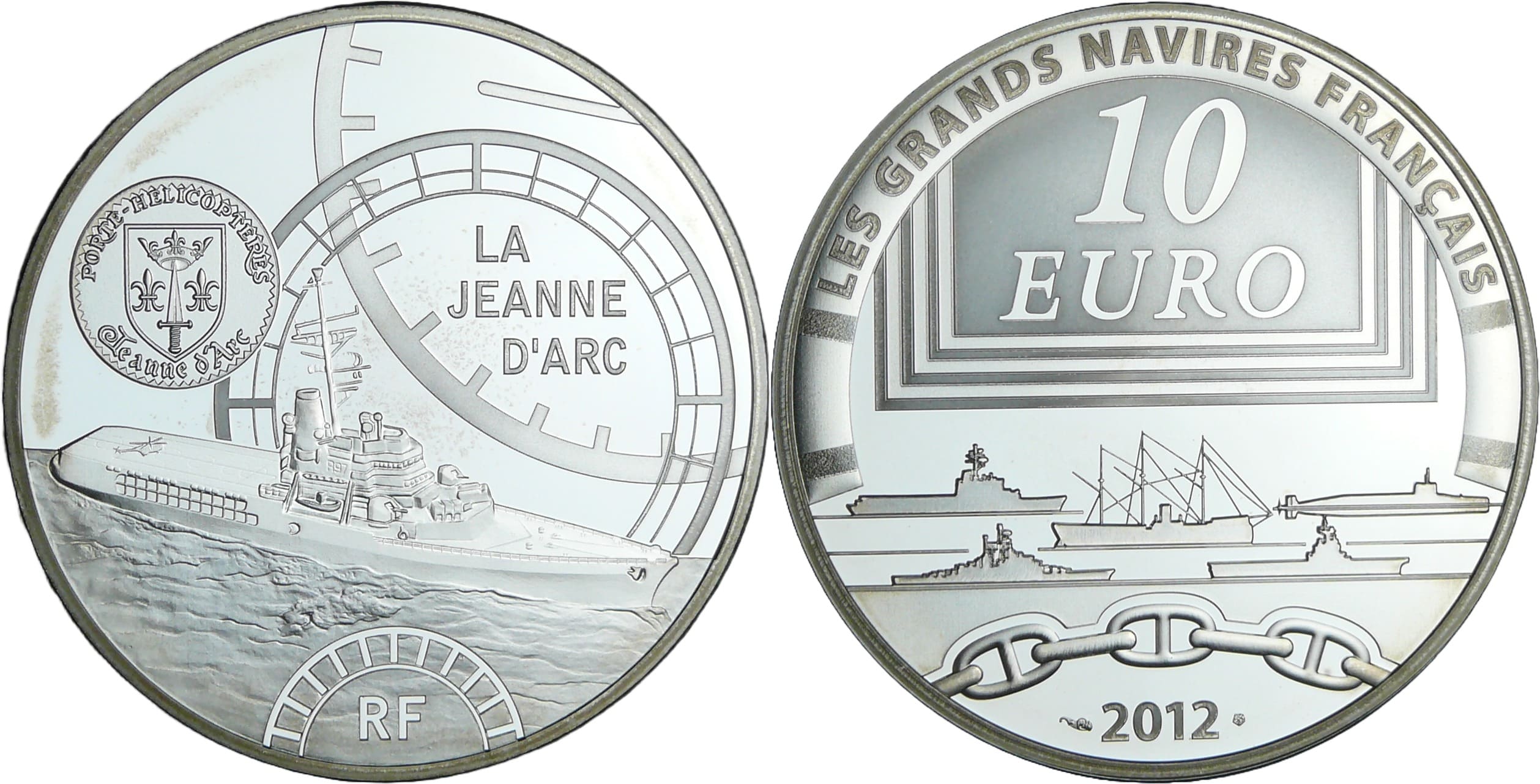 / France – Série Les grands navires français – Belle Épreuve de 10 euro – le porte-hélicoptère La Jeanne d’Arc 2012