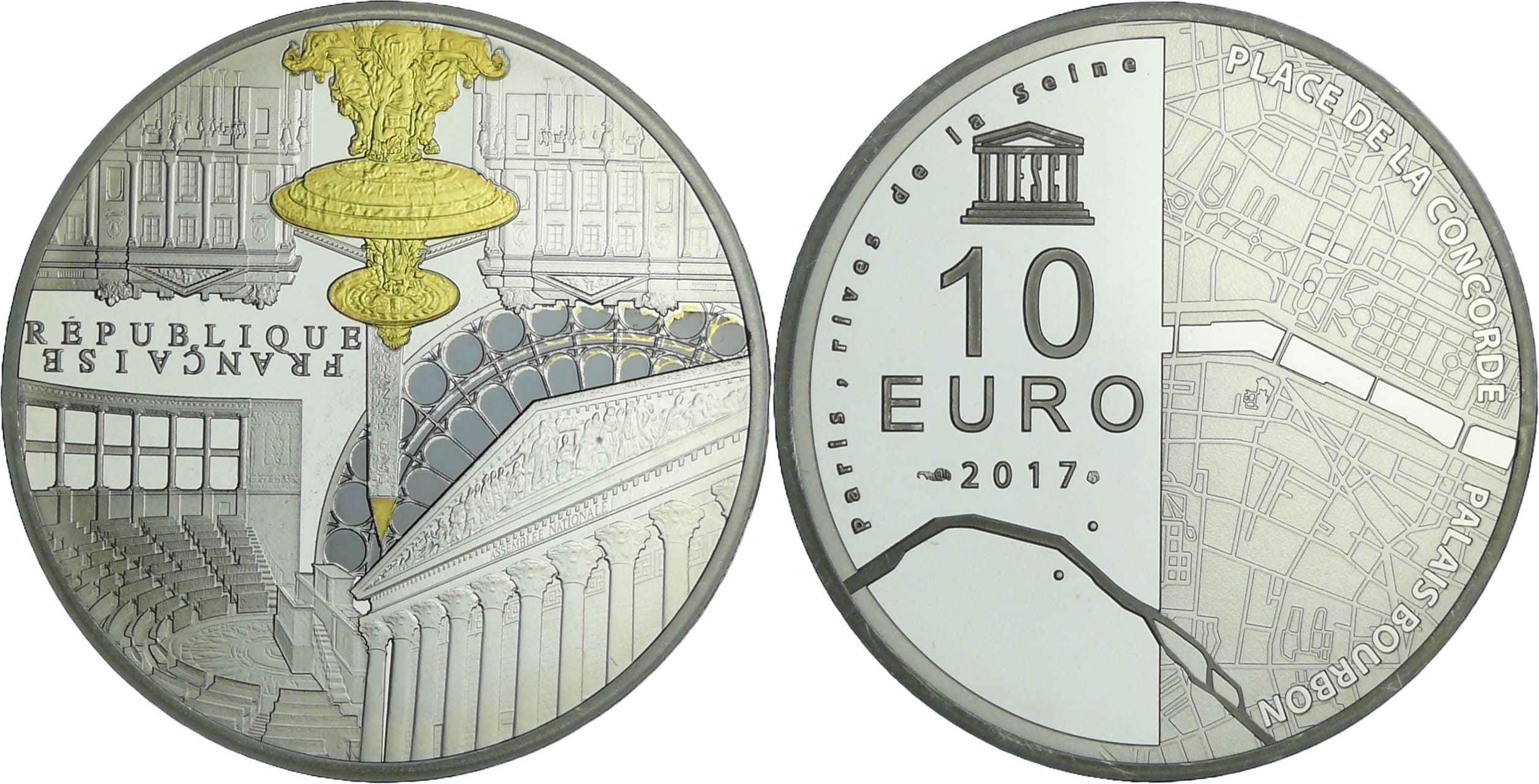 France – Série UNESCO Rives de Seine – Belle Épreuve de 10 euro -Place de la concorde Palais Bourbon 2017