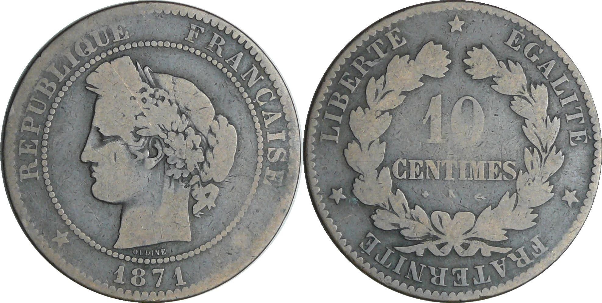 / France – Troisième république (1871-1940) – 10 centimes Cérès 1871 K (Bordeaux)