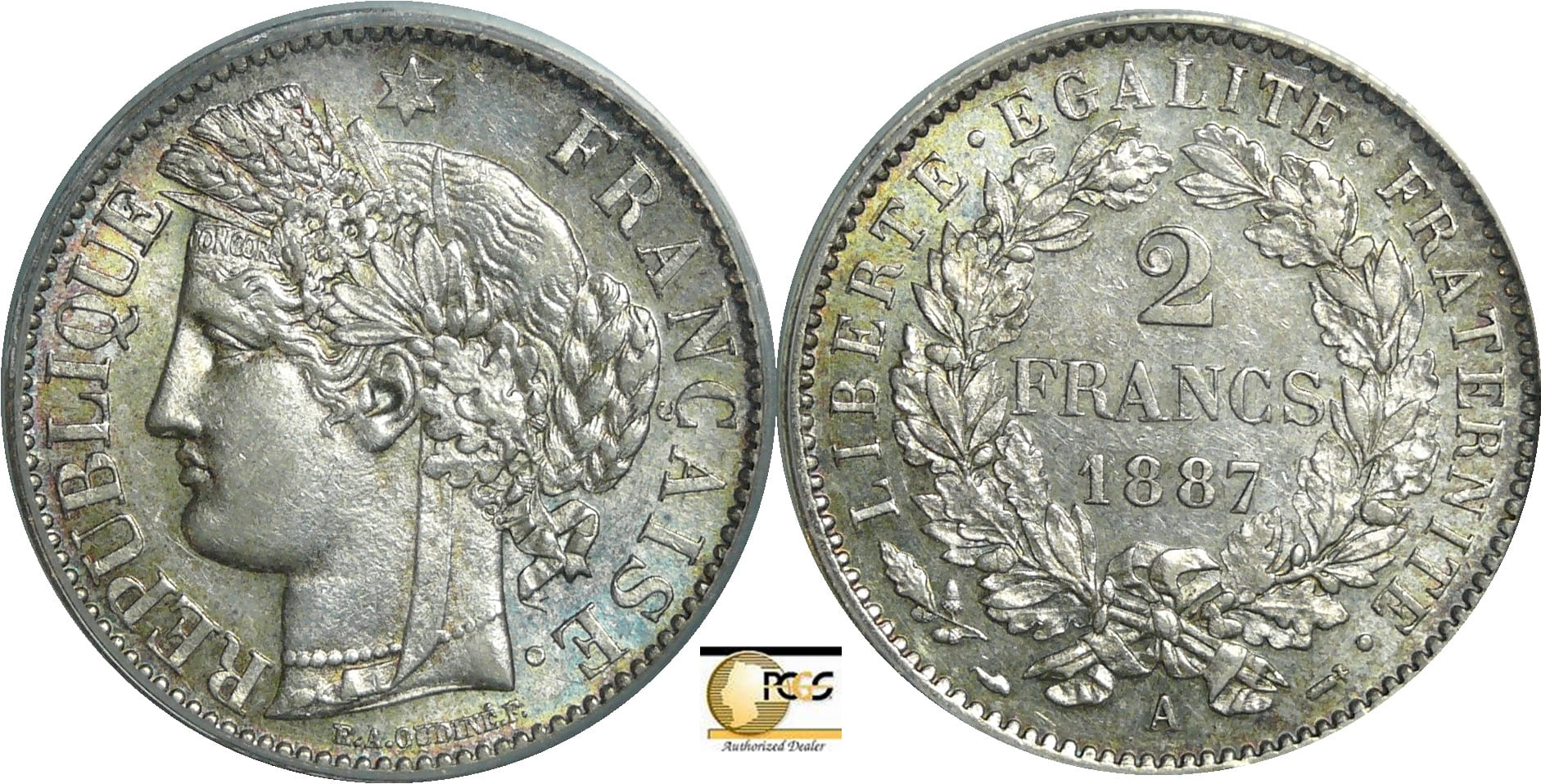 / France – Troisième république (1871-1940) – 2 francs Cérès avec légende 1887 A (Paris)