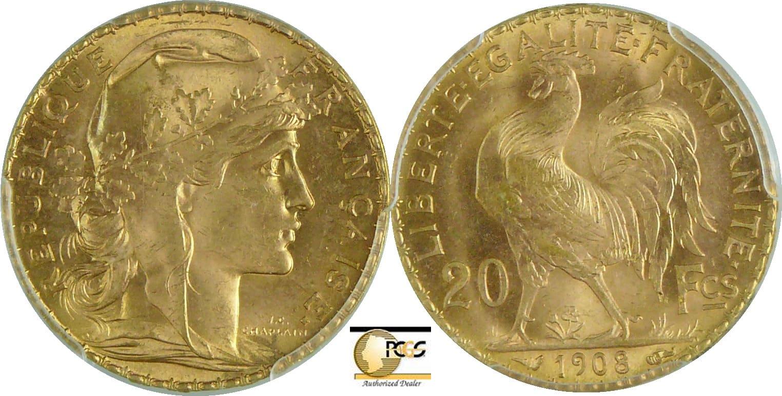 / France – Troisième république (1871-1940) – 20 francs Marianne 1908 A (Paris)