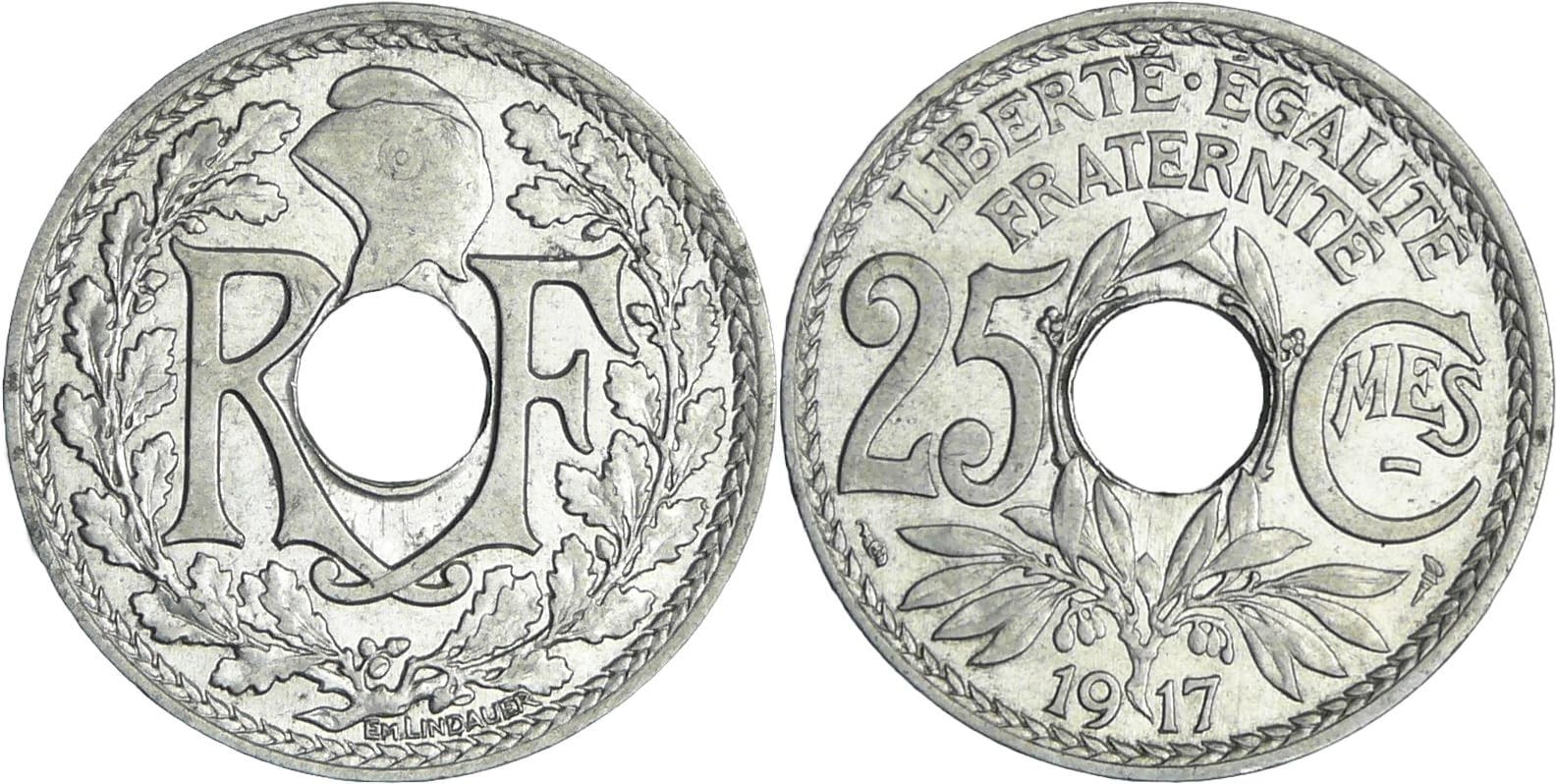 France – Troisième république (1871-1940) – 25 centimes Lindauer – Cmes souligné 1917