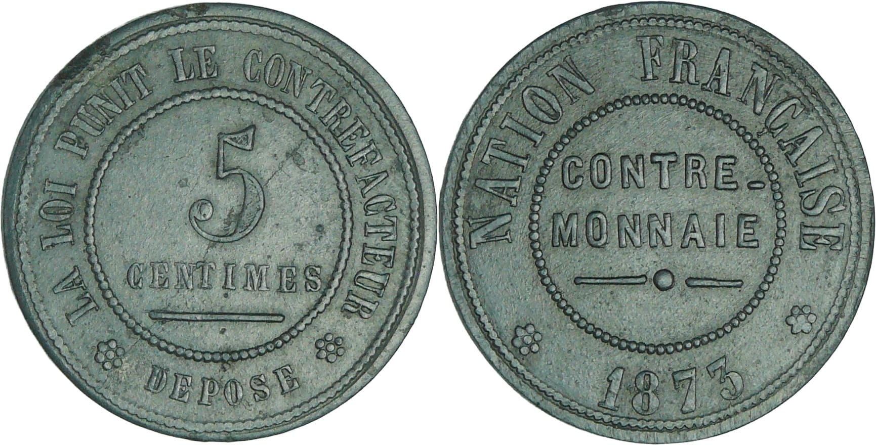 / France – Troisième république (1871-1940) – 5 centimes contre-monnaie 1873 (Paris)