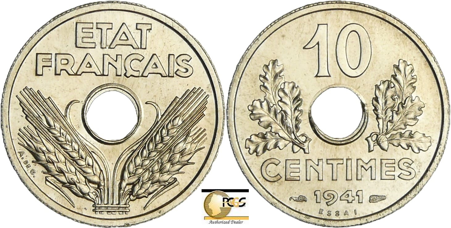 / France – Troisième république (1871-1940) – Essai 10 centimes Lindauer 1941 Maillechort