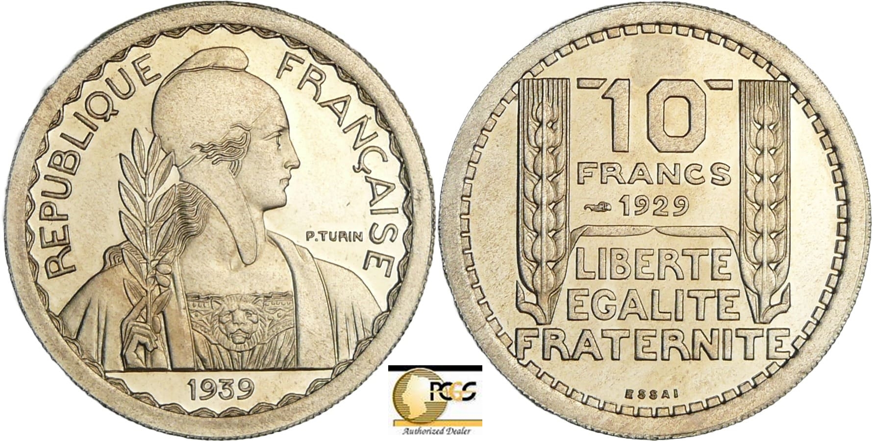 / France – Troisième république (1871-1940) – Essai 10 francs concours de Turin hybride 1929/1939 module 26 mm